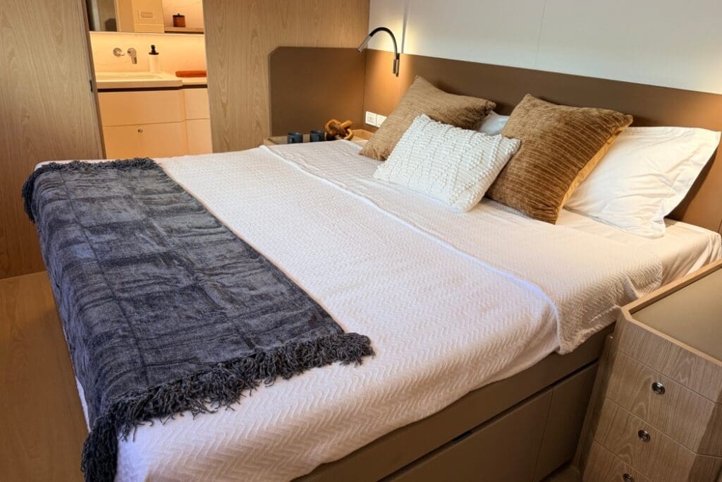 Guest accommodations are equally considered — spacious, quiet, and intelligently laid out to ensure privacy and comfort for extended cruising. Generous headroom, premium materials, and integrated systems create an atmosphere that feels permanent rather than temporary.