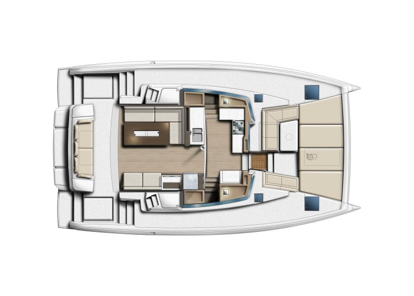 | Notable Upgrades: Excellence Pack, Upgraded 50 HP engines, Electronics package with autopilot, full batten main with lazy bag, cabin fans |