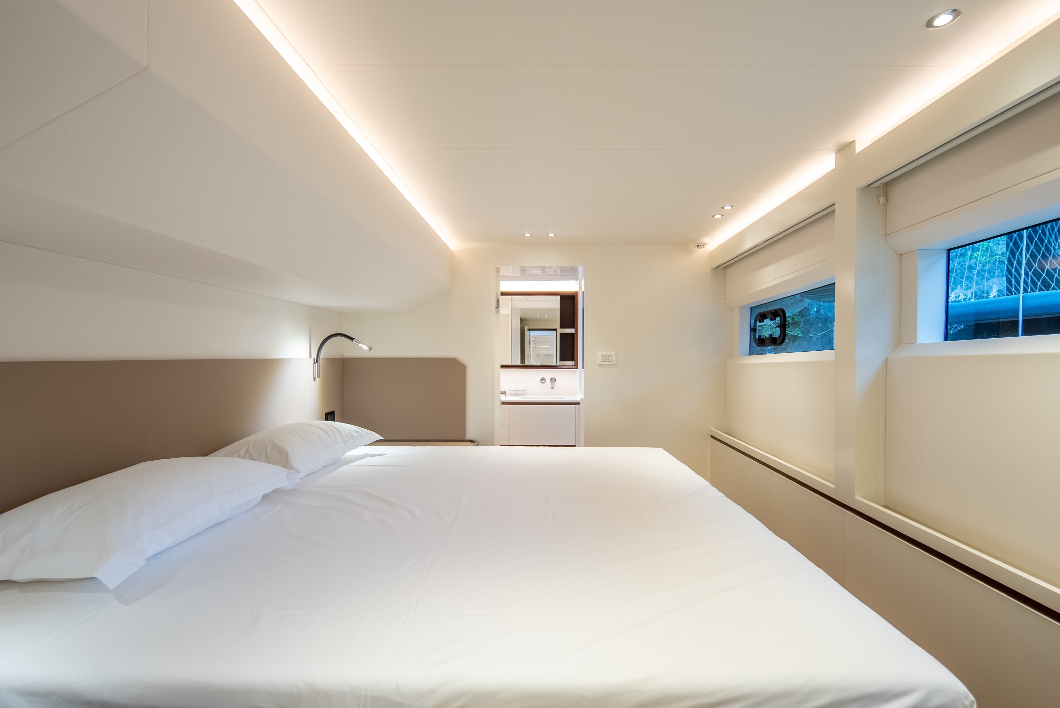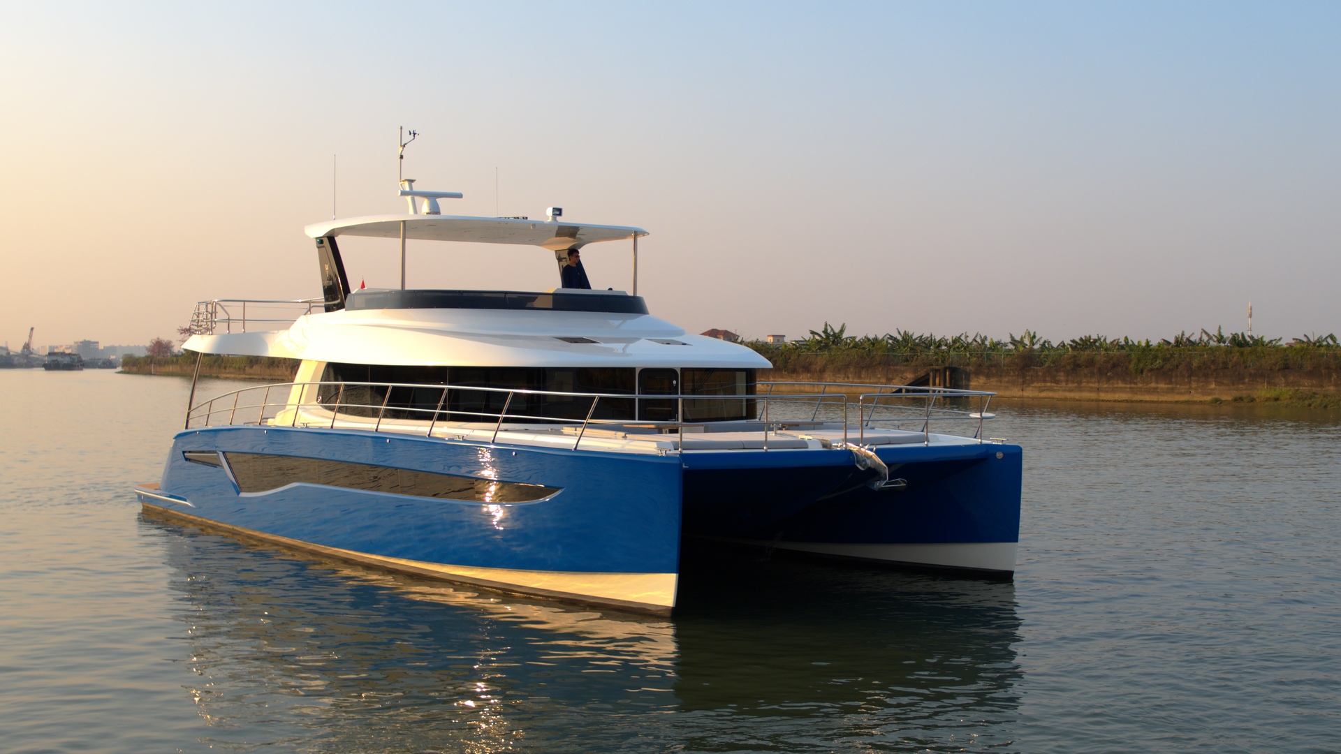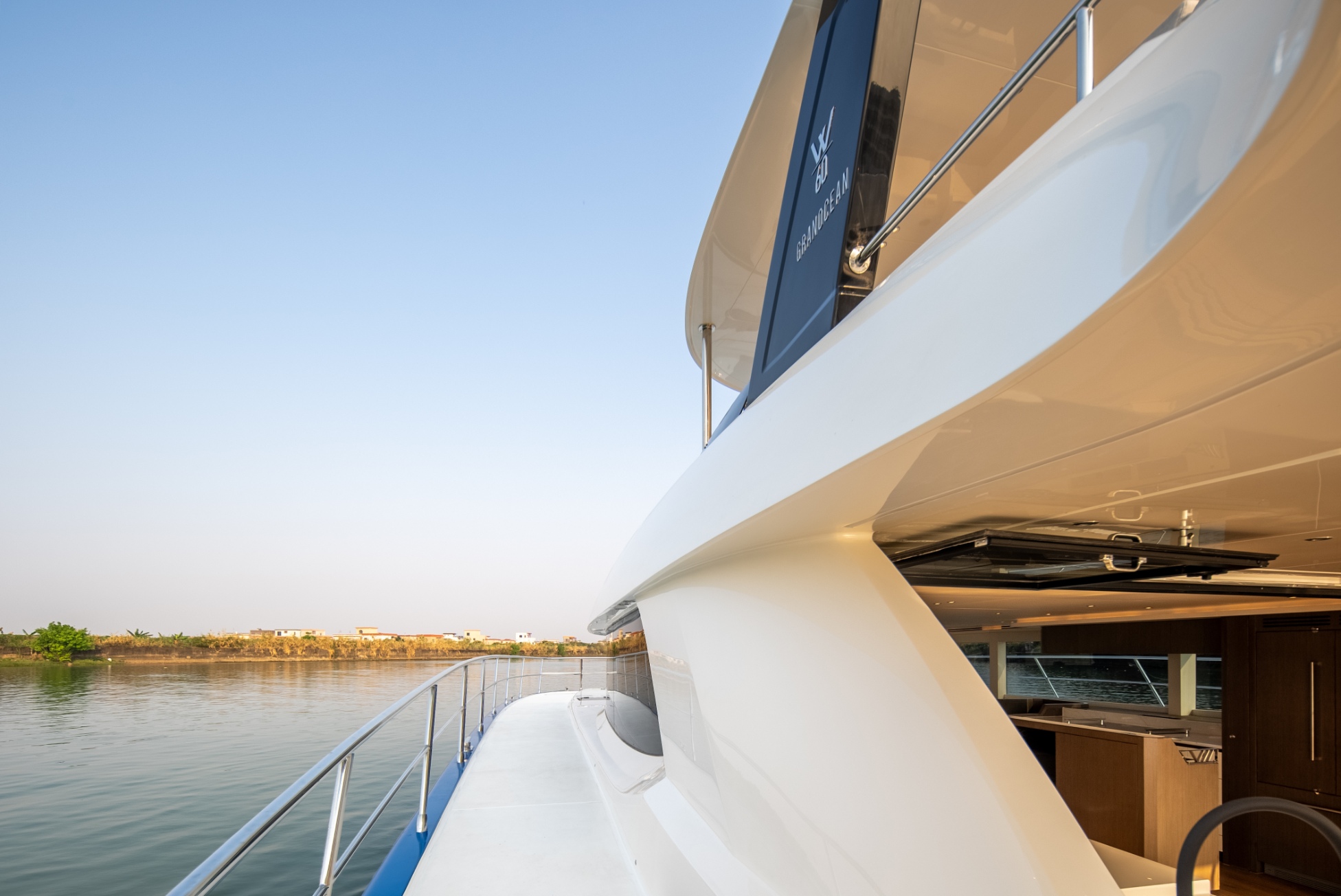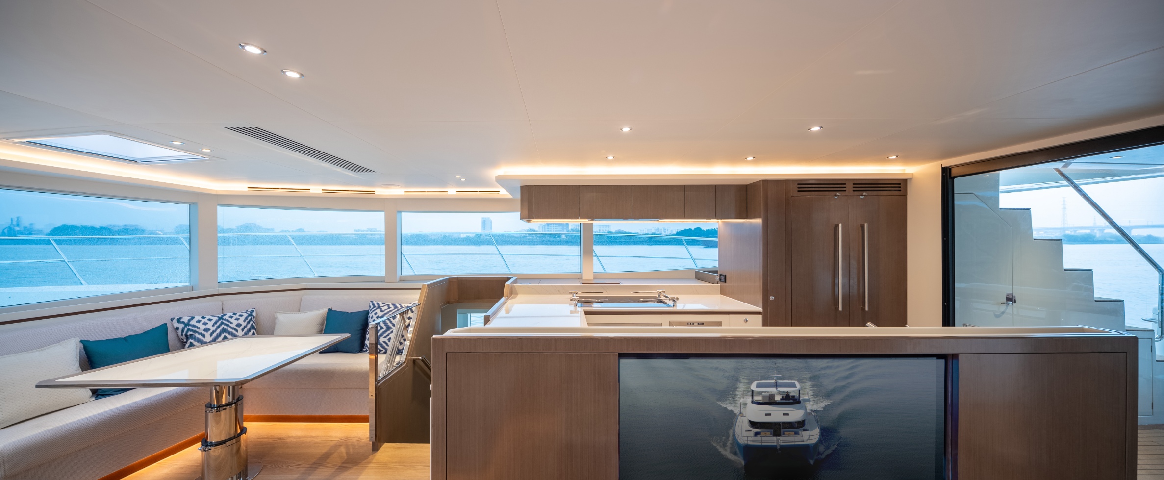 The W-60  from GranOcean is the most spacious 60′ power catamaran in her class.   Flared hulls combine with a high bridge deck clearance and wide beam, for a silky smooth ride and phenomenal living space.