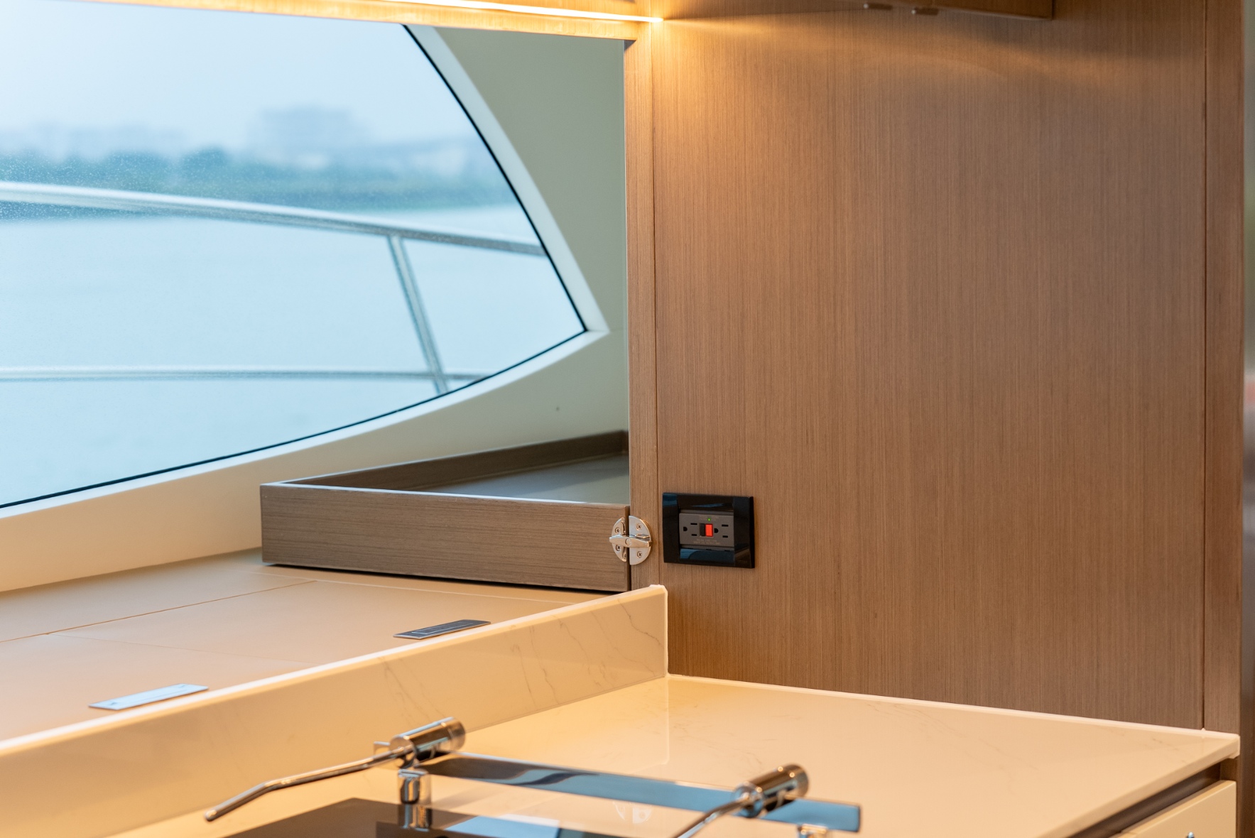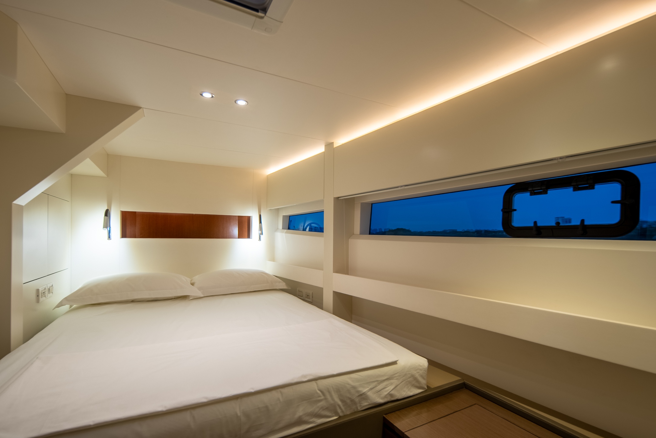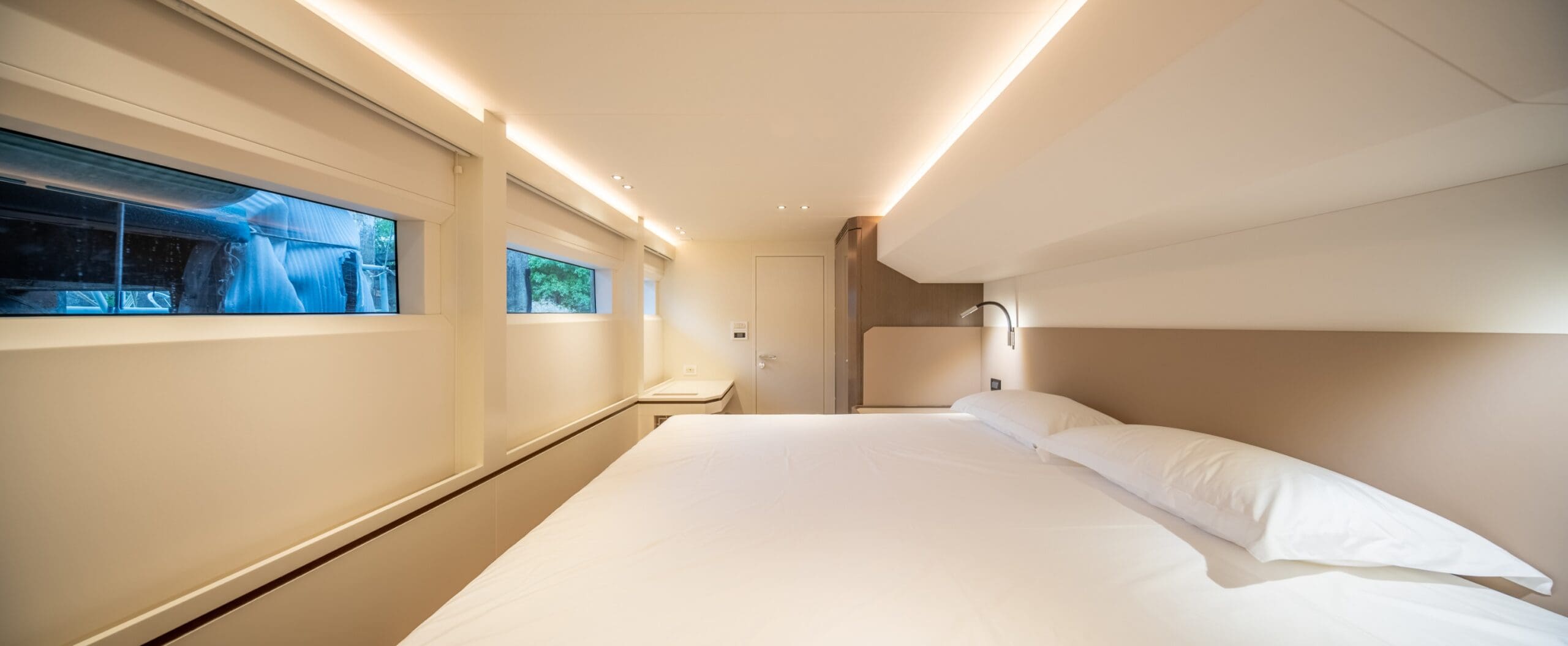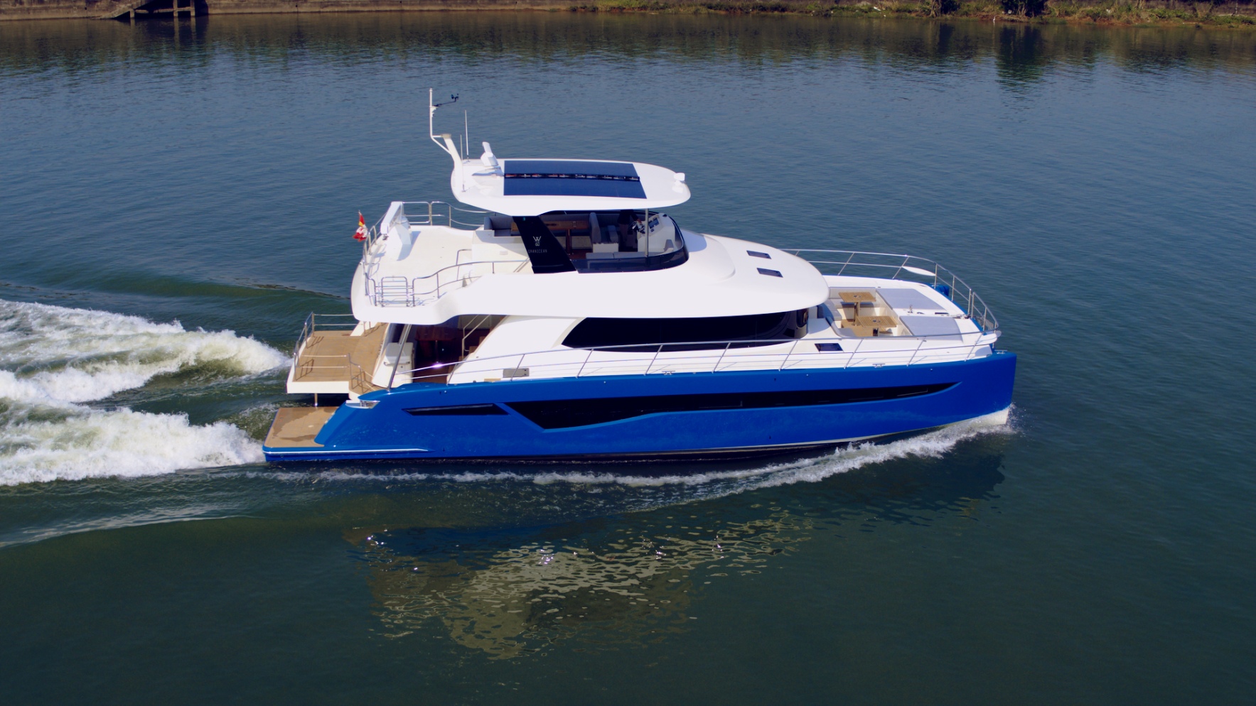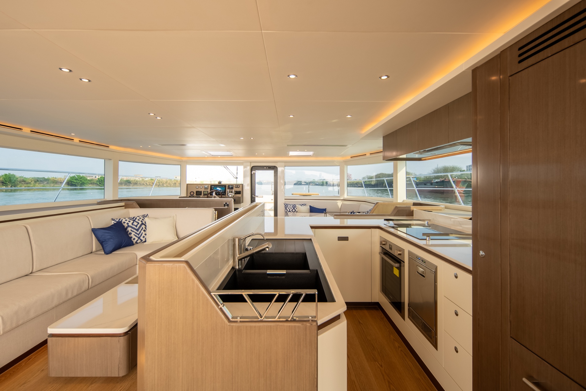 The W-60  from GranOcean is the most spacious 60′ power catamaran in her class.   Flared hulls combine with a high bridge deck clearance and wide beam, for a silky smooth ride and phenomenal living space.