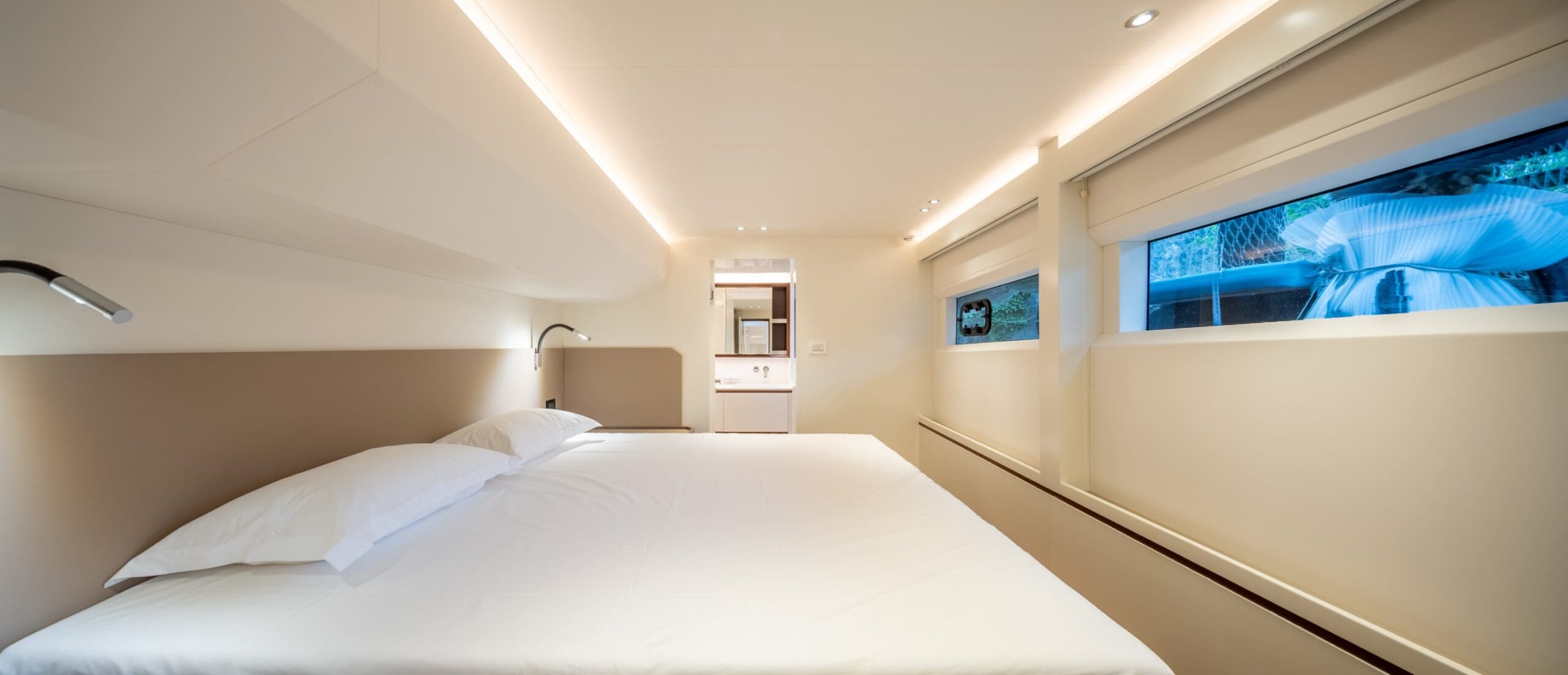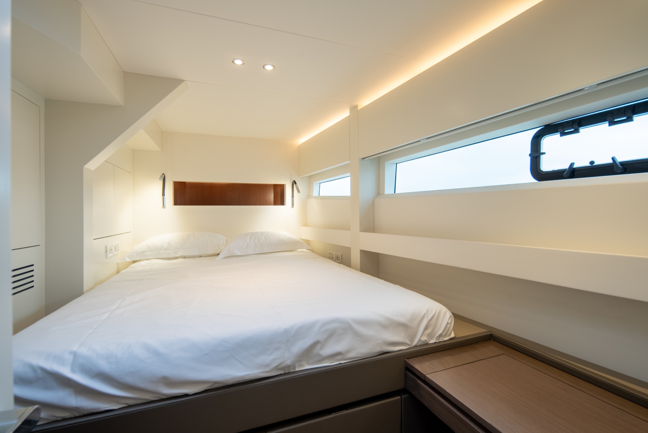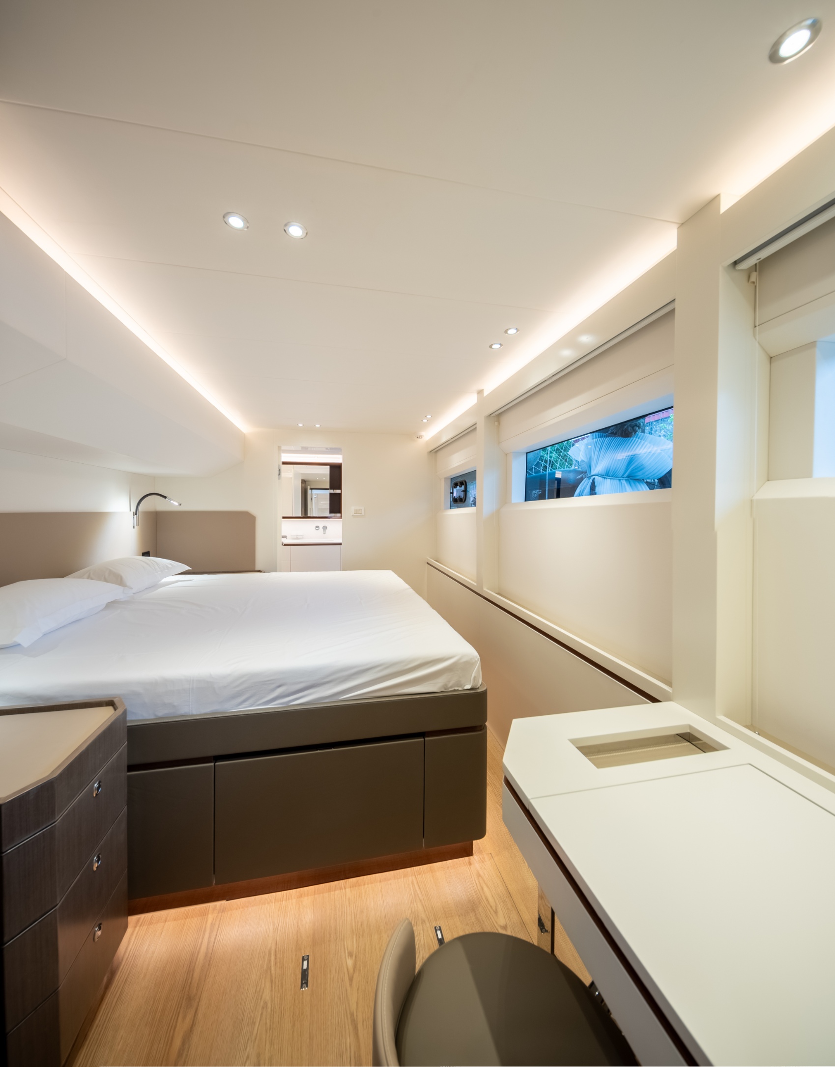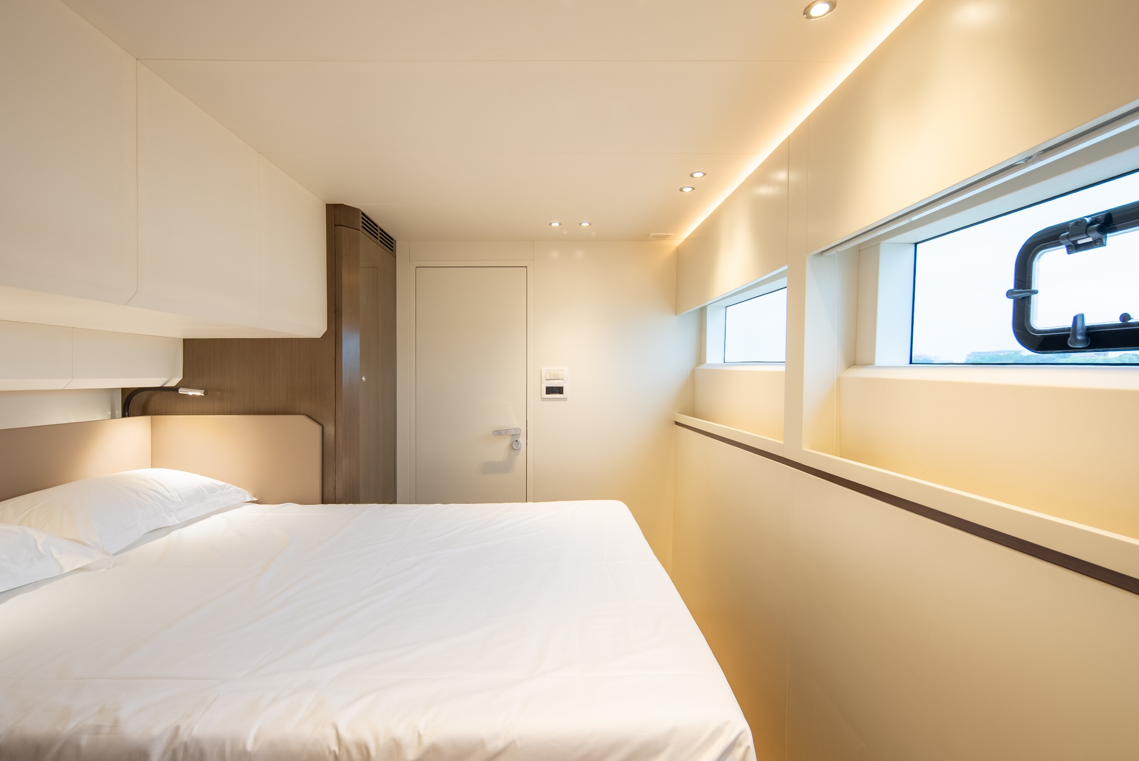 The W-60  from GranOcean is the most spacious 60′ power catamaran in her class.   Flared hulls combine with a high bridge deck clearance and wide beam, for a silky smooth ride and phenomenal living space.