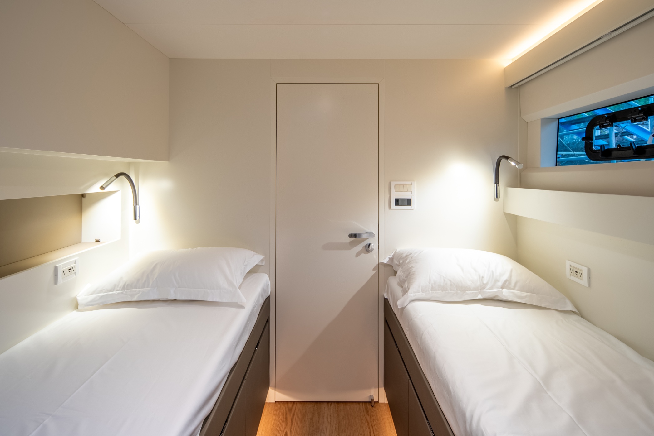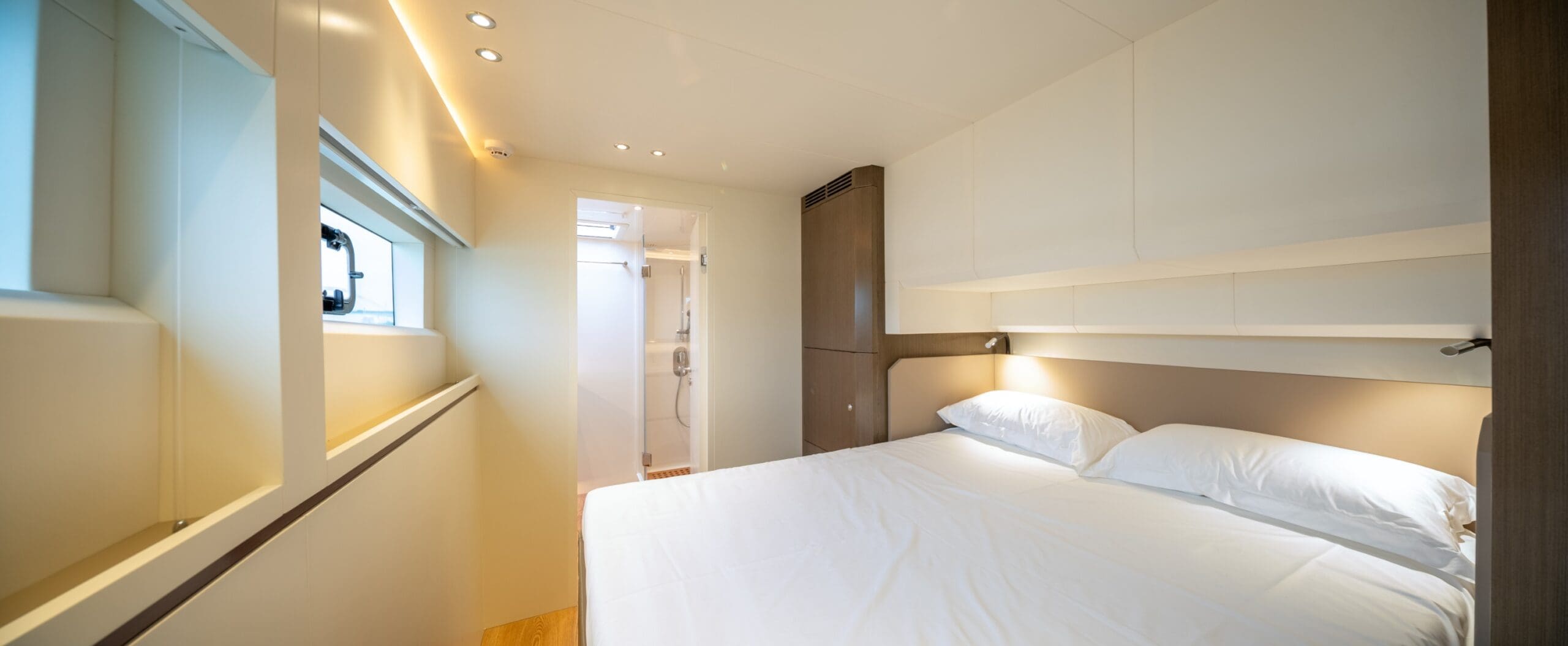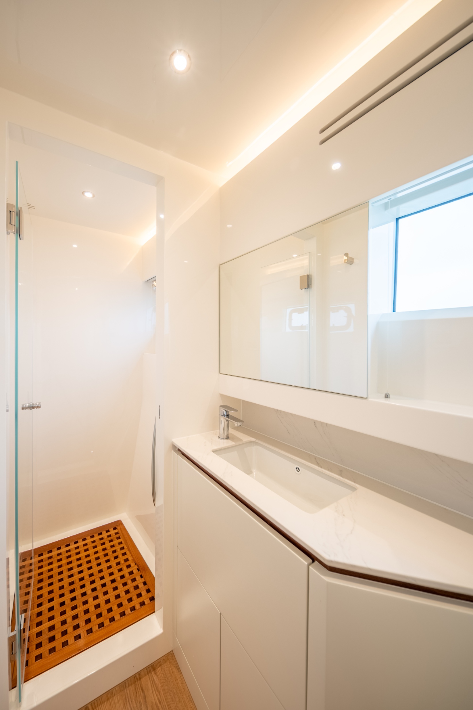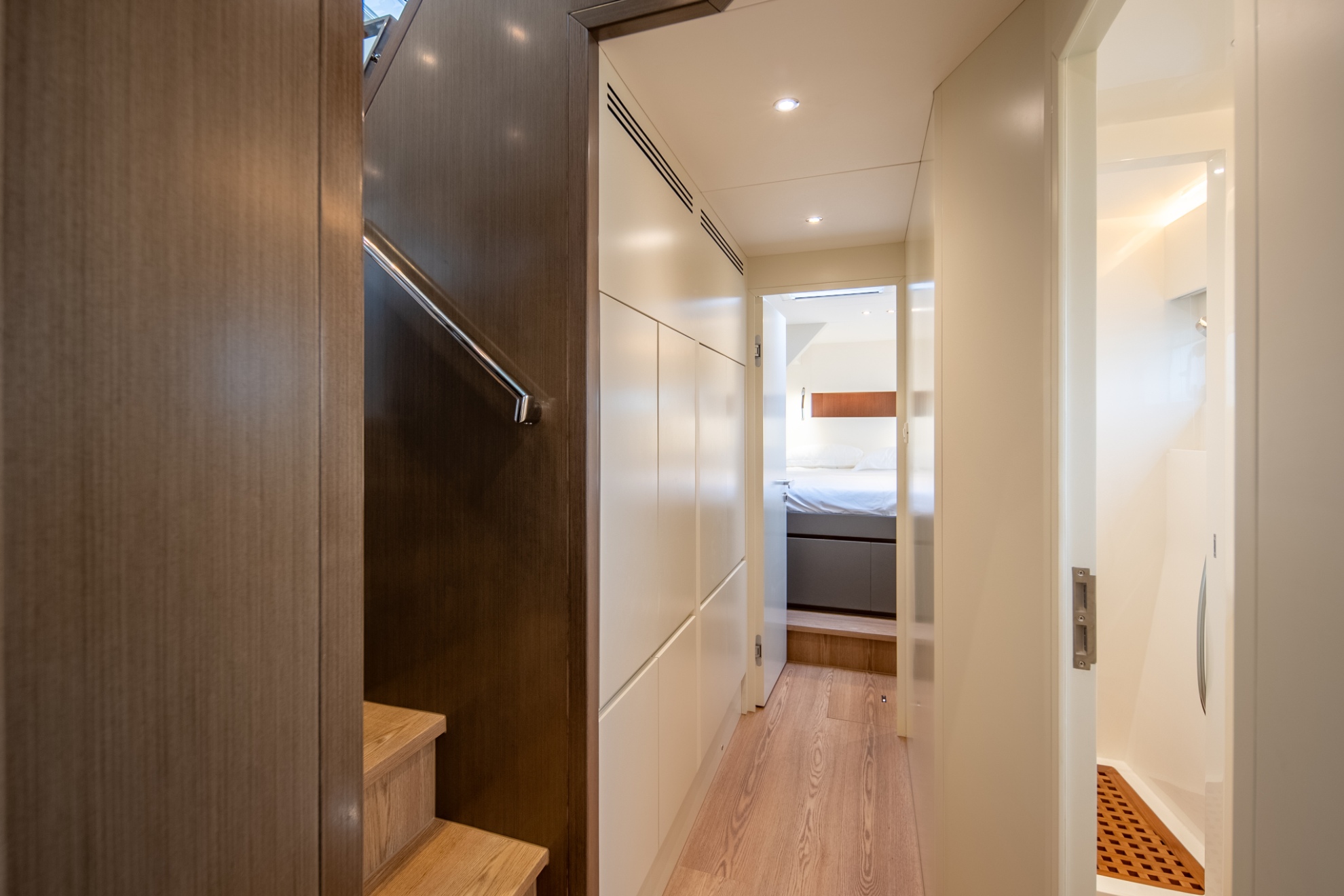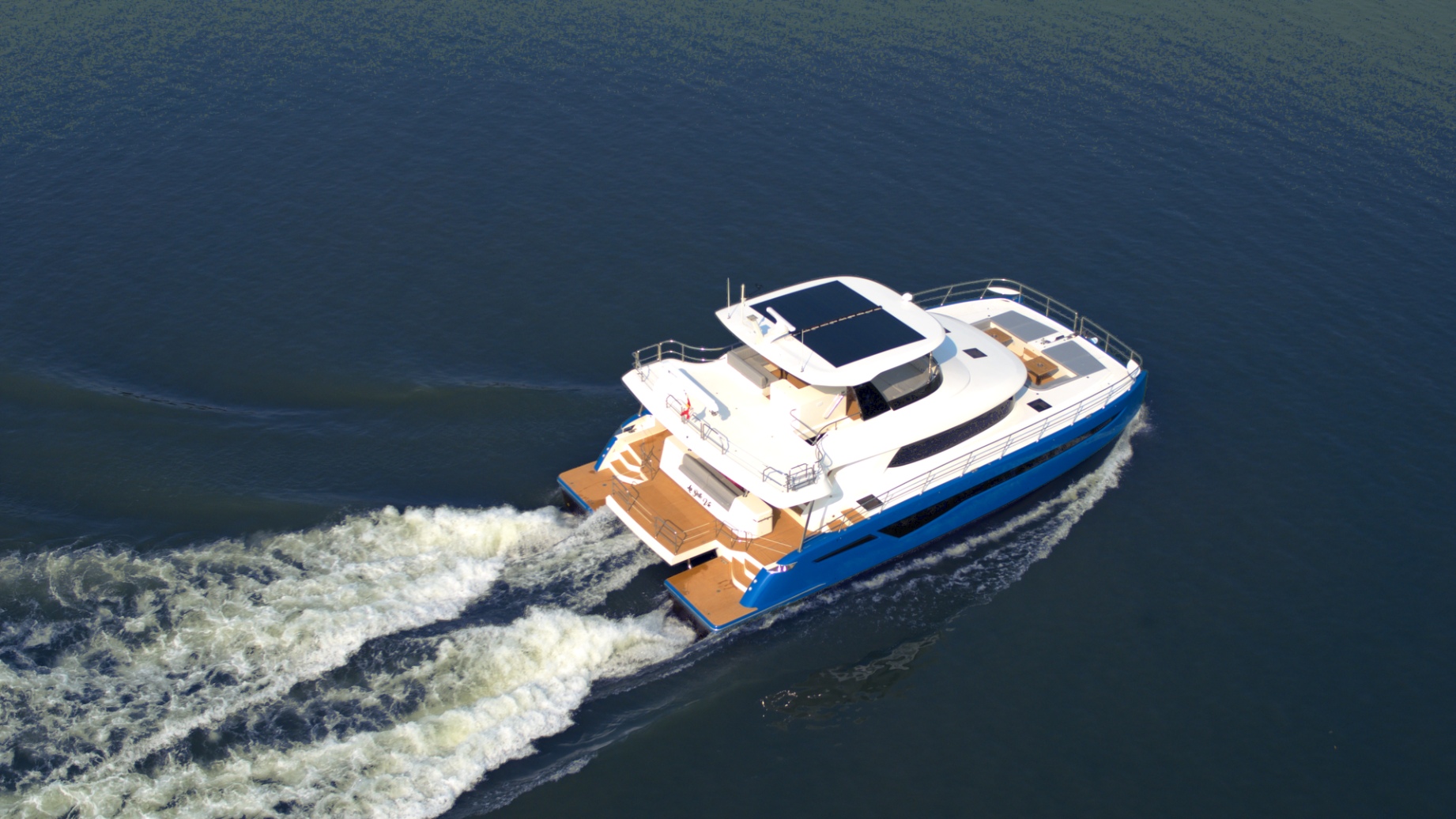 The W-60  from GranOcean is the most spacious 60′ power catamaran in her class.   Flared hulls combine with a high bridge deck clearance and wide beam, for a silky smooth ride and phenomenal living space.
