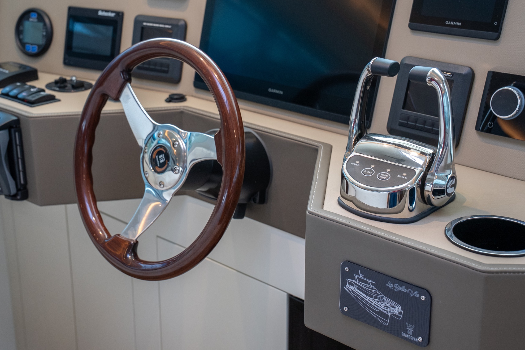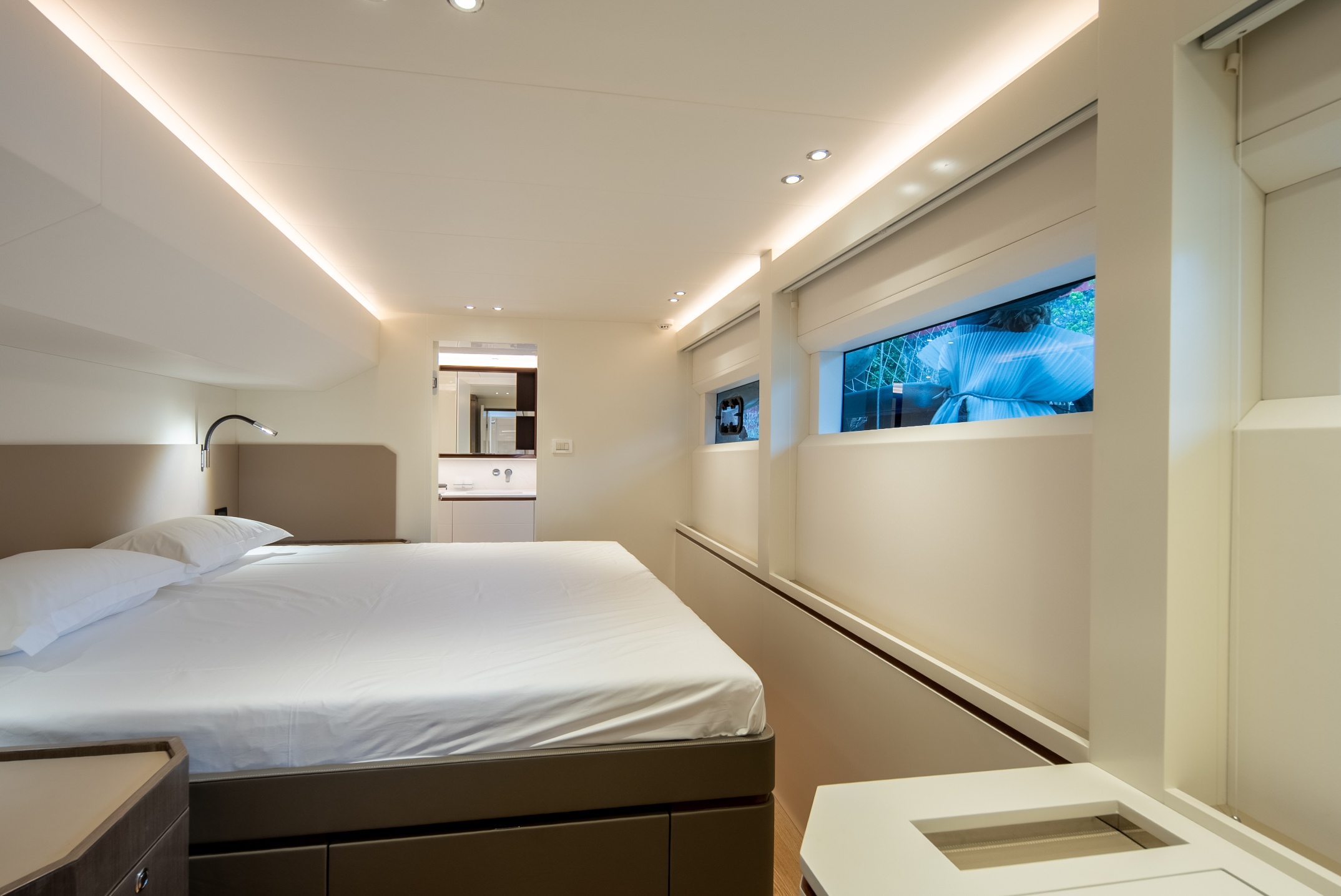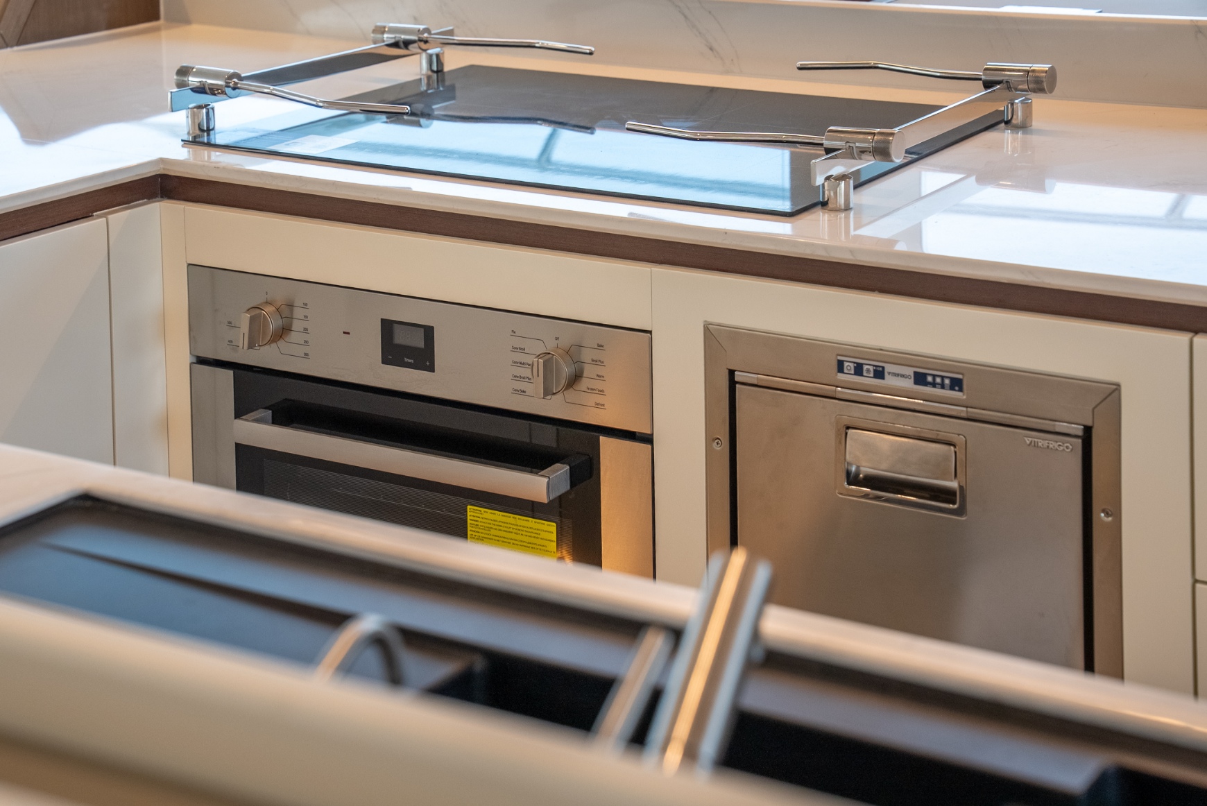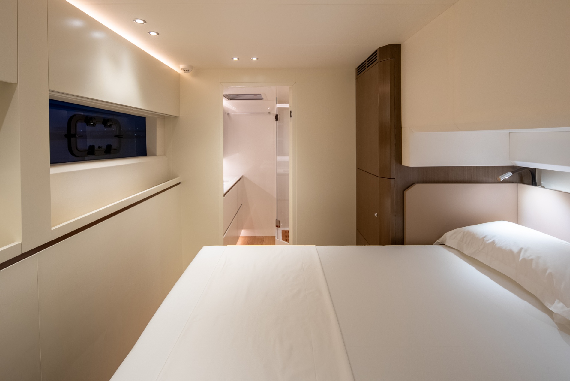 The unique flybridge wings provide ample open space for lounging, or a large tender, while providing cover for the cockpit. Fit out is sumptuous throughout, using class leading components.