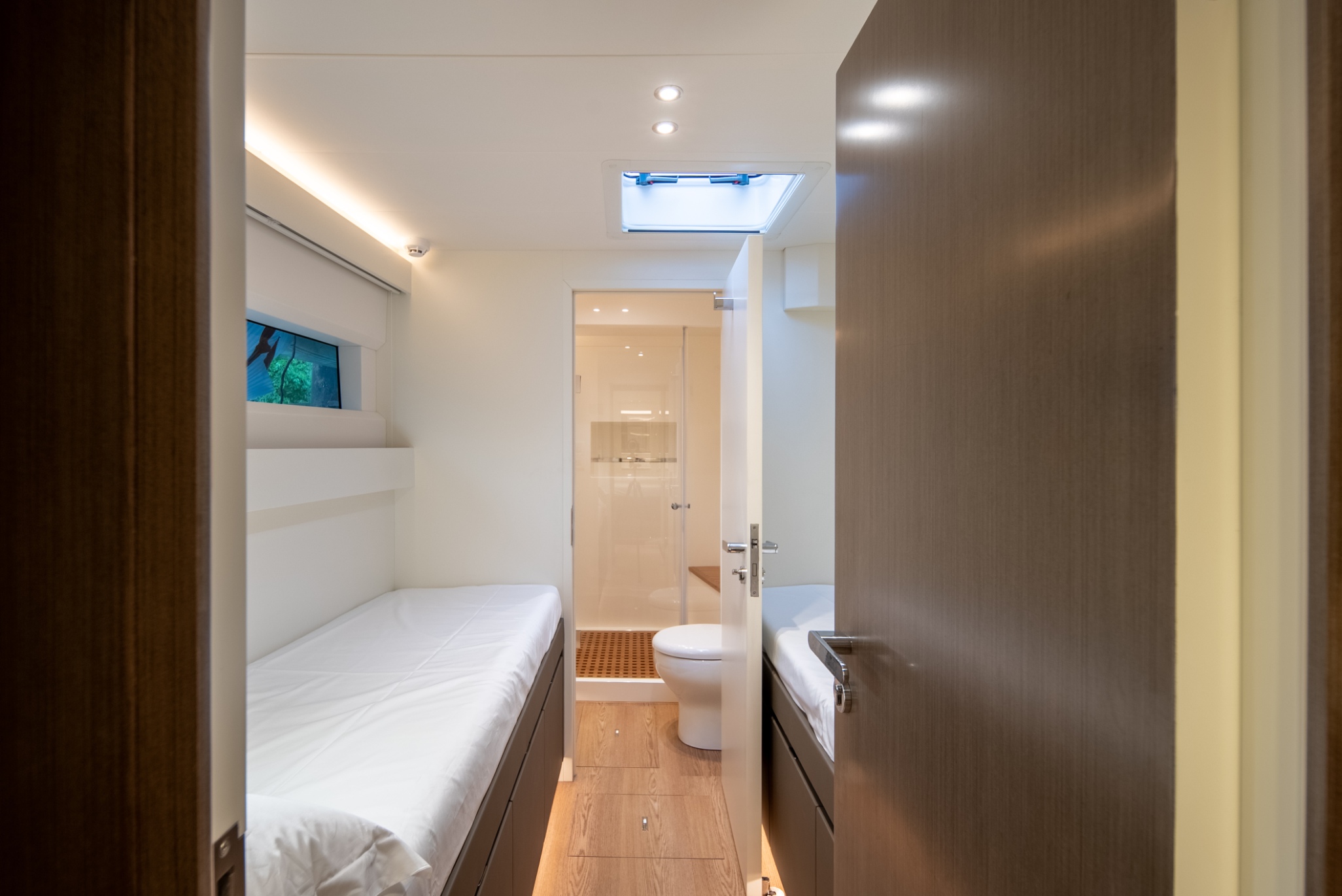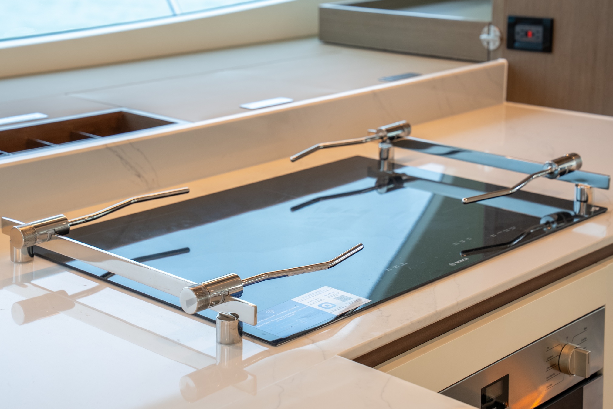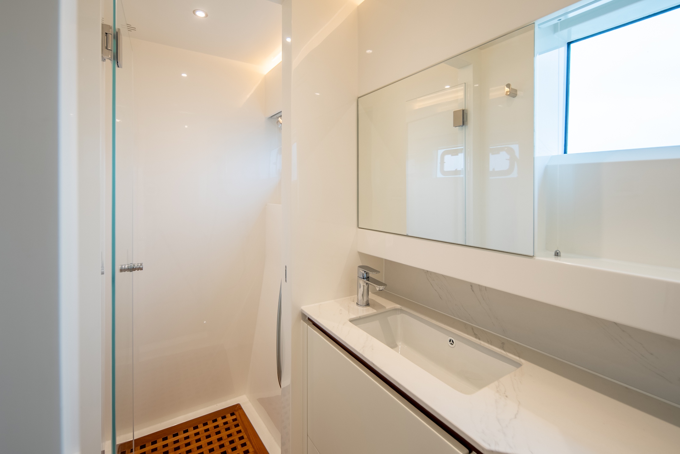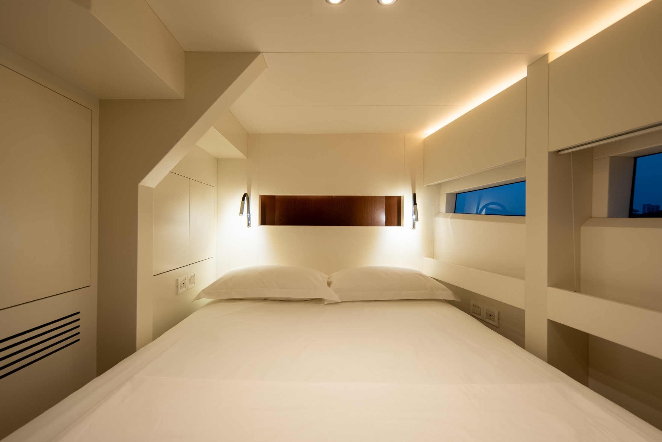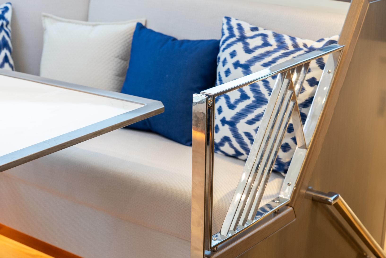 The unique flybridge wings provide ample open space for lounging, or a large tender, while providing cover for the cockpit. Fit out is sumptuous throughout, using class leading components.