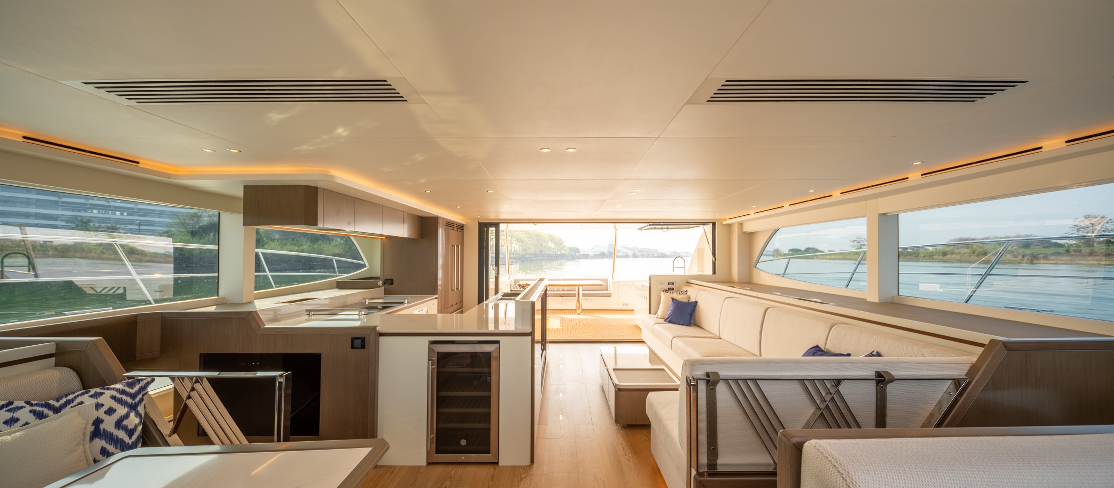 • Flexible configurations – choose between an open or enclosed flybridge.